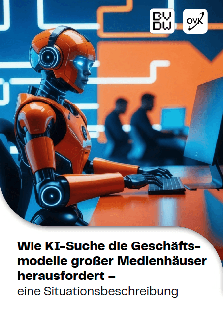 Wie wirkt sich KI-basierte Online-Suche auf die Geschäftsmodelle von Publishern und Vermarktern im deutschen Werbemarkt aus? Dieser Frage widmet sich der Online-Vermarkterkreis (OVK) im Bundesverband Digitale Wirtschaft (BVDW) e. V. in seiner Unit AdTech & Programmatic. In einer Situationsanalyse erklärt der OVK, wie KI-Chatbots die Mediennutzung verändern, zeigt Auswirkungen für Medienhäuser und erste Schritte auf, die für Publisher im Umgang mit KI-Suche entscheidend sind.